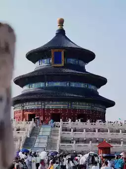 Located in southern Beijing, the Temple of Heaven was the site where the emperors of the Ming and Qing dynasties offered sacrifices to heaven and prayed for a good harvest. It is a culmination of ancient Chinese architecture and cosmology. Upon entering the Temple of Heaven, one is struck by the interplay of blue brick and red walls and soaring eaves, and the air seems to still resonate with the rituals and music of past emperors.