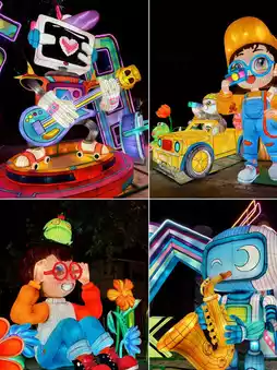 1. Immersive Light and Shadow Journey: A dazzling 350,000-square-meter world with seven themed exhibition areas, blending intangible cultural heritage lanterns with cute characters, Guochao (Chinese trendy culture), steampunk, and many other youthful cultural elements. The 10-meter-high "Smart Childhood Dream" lantern and the "Dreamy Seven-Color Ice Cream" lantern in the cute creatures night zone are popular photo spots for families.