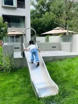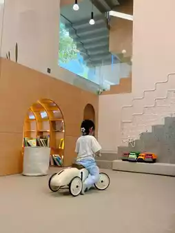Play 🎠: As soon as we arrived, the kids were captivated by the children's area in the lobby, which features a reading nook, a mini kitchen, a big slide, and various toy cars. The courtyard also has a pool, swings, and slides. Just a 5-minute walk away is Yanqi River, where you can go creek trekking, play in the water, and catch small fish. The Shentangyu trail and caves are also free to explore.