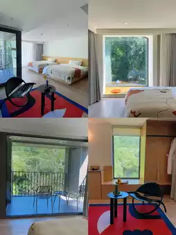 Stay 🏨: The homestay is a three-story minimalist-style building. We booked a sunlit twin room with large floor-to-ceiling windows and a small balcony—definitely a bonus! The view of the lush green mountains and trees outside is incredibly refreshing 🍃. The bathroom is well-designed with separate wet and dry areas, and the large bathtub was a hit with the kids. They even provide disposable bathtub covers for cleanliness.