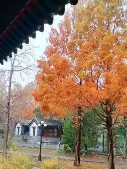 Here, in the heart of a rushing capital, time slows to the pace of drifting leaves. Sunlight filters through persimmon-orange maples, tracing lace shadows on moss-covered stone paths, while the air carries the scent of chrysanthemums and damp earth—a fragrance old Beijing would remember.