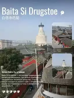 A historic traditional Chinese medicine pharmacy, operating for over a century. It still sells medicinal herbs, ginseng roots, and other TCM ingredients. Rooftop cafes offer views of the hutongs.