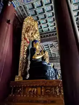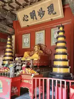 One of the must-see highlights is the 18-meter-tall carved sandalwood Buddha statue in the final hall inside. OMG! 😲 It reaches the ceiling. Even better, it's carved from a single piece of wood! It's even listed in the Guinness World Records. It's truly magnificent, no lie!