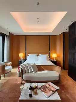 The minibar is another highlight—it’s fully stocked with complimentary drinks, replenished daily, and more extravagant than anything I’ve seen before.
