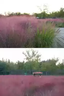 📷 Low-angle shots use the pink muhly grass in the foreground to create a dreamy effect, perfect for capturing beautiful photos in no time! The pink grass is arranged in a staggered pattern, and finding the right angle can create a poetic "person among flowers" vibe.