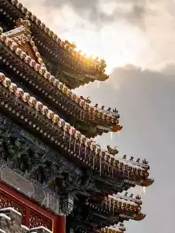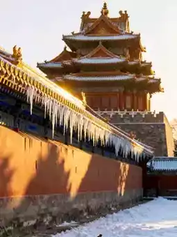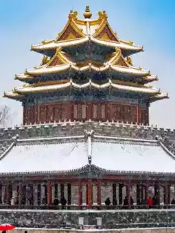 - Structure: The corner tower features a triple-eaved pointed roof, with layered eaves, 28 wing corners, 10 mountain flowers, and 72 ridges, exquisitely crafted; after snow, the snow on the flying eaves contrasts with the vermilion pillars and golden glazed tiles, with icicles hanging like crystal tassels, stunning in detail.