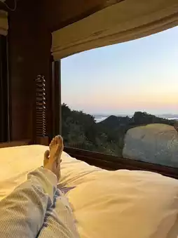 In the evening, lying in bed watching the golden sunlight on the mountain,