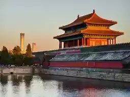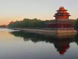 The weather was clear and fine, so we went to climb Jingshan. Get off at Tian'anmen East Subway Station, cycle to the Northeast Corner Tower of the Forbidden City, then walk along the Golden Water River to Shenwu Gate. After passing through the underpass, enter Jingshan Park with a 2 yuan ticket. Tour the Five Pavilions of Jingshan from east to west, and from Wanchun Pavilion, overlook the cityscape of Beijing in all four directions. After descending the mountain and exiting Jingshan South Gate, it happened to be sunset, with the afterglow illuminating Shenwu Gate. We continued along the Golden Water River to the Northwest Corner Tower, by which time the sun had already set.