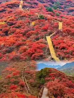 - Ancient trade route red leaf section: A restored stone slab path along the ancient trade route from the Ming and Qing dynasties (the camel bell ancient road connecting Beijing and Shanxi), flanked by naturally growing Chinese sumac, with gentle slopes, suitable for slow walking and photography.