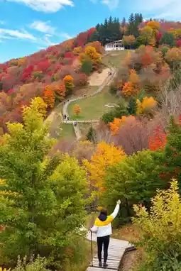 🔥The autumn scenery here is truly breathtaking! The maple trees covering the hills look like they are on fire, with red leaves sparkling under the sunlight~ The golden ginkgo leaves cover the paths, and when the wind blows, it feels like a shower of golden rain ✨ The lush green pines and cypresses add a touch of elegance, as if applying a high-end filter to this oil painting ✨