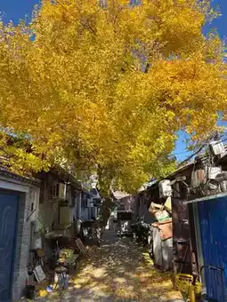 ❹ Beiluoguxiang: The entire hutong is wrapped in golden wax trees; just find a coffee shop to sit and relax, super cozy😌