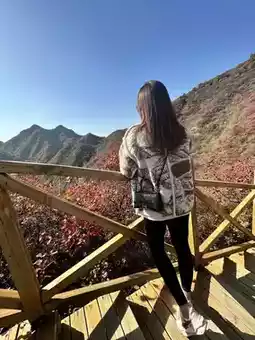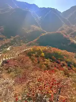 Panorama: Want to capture the spectacular "red leaves covering the entire trail"? Have someone stand on the gentle slope opposite the trail (such as a small platform beside the trail). Open the camera on your phone, zoom in 2-4 times, and slowly move the phone along the direction of the trail. This avoids messy branches and perfectly blends the person with the red leaf forest.