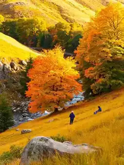 The Water Great Wall in autumn is stunningly colorful. The trees in the mountains seem to be painted by nature’s artistic hand; fiery red maple leaves sparkle like flames under the sunlight, golden ginkgo leaves gently sway like delicate fans, falling in the breeze like a golden rain curtain. The verdant pines and cypresses stand even taller amidst the red and yellow autumn leaves, adding a touch of tranquility to the autumn scenery.