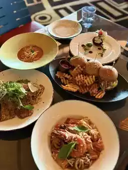 Perfect for a relaxed lunch or dinner stop between rides — and totally photo-worthy with the Jurassic-themed decor!
