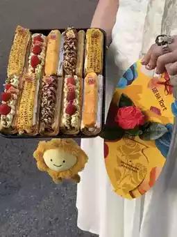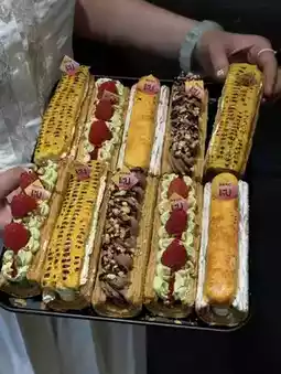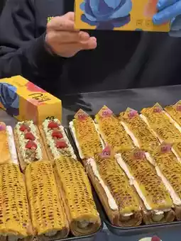 Their new U-shaped mille-feuille tarts are lined up perfectly in the display, looking absolutely irresistible.