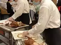 After a while, a chef in a white coat began cutting the gleaming golden duck right before my eyes.