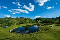 - Alpine Meadow: The largest natural camping site in Beijing, with a flat green carpet where you can freely pitch tents, lay picnic mats, fly kites, play frisbee, or simply lie down and watch the clouds. A wooden boardwalk at the meadow’s edge leads to Wangyou Lake, with babbling streams along the way where you can wear slippers to wade and catch tadpoles. The small hill in the center of the meadow is a perfect photo spot, with blue skies and white clouds as the backdrop, creating scenes reminiscent of Studio Ghibli animations. The backlight at 5:00 PM is ideal for silhouette photography.