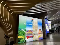 The facilities at Beijing Capital International Airport feel quite advanced. The restrooms are equipped with TOTO fixtures, and there's a large white tiled and white wall perfect for photos. You'll need to take the Airport Express to get there.