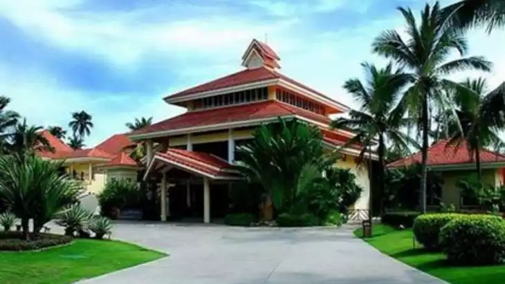 * A peaceful Buddhist temple with vibrant prayer halls, incense, and ornate statues.