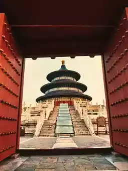 Hall of Prayer for Good Harvests: The iconic building of the Temple of Heaven, with a three-tiered blue glazed tile pointed roof. Inside, 28 nanmu wood pillars symbolize the celestial bodies and the four seasons. It was the place where the emperor prayed for a good harvest in spring, with architectural details hiding astronomical mysteries.