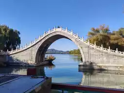 The bustling tourists on the bridge and the leisurely boats on the lake filled the still white stone bridge with a flowing vitality.