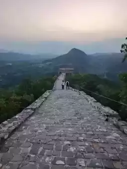 So in the early evening, we took the cable car up. Simatai is the only part of the Great Wall that still keeps its original structure from the Ming Dynasty. In the soft breeze and fading sunlight, the wall looked especially calm and impressive. From the top, we watched the sun slowly set behind the mountains, turning the wall a warm golden color. As night fell, the lights came on, and the Great Wall took on a new look, quietly standing under the stars.