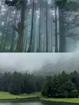 3️⃣ Hot Spring Resort: Capture the hot spring water and the surrounding greenery
