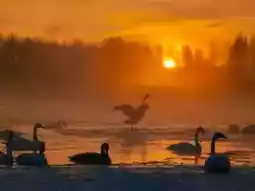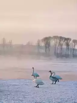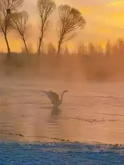 🌅 Set up your camera at 6:30 am! When the first ray of golden light shines on the rime, hundreds of swans fly over the ice-blue lake, and any photo taken with your phone looks like a National Geographic masterpiece!