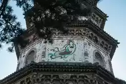 Beside the Cloud-Nest Pine stands a 34-meter octagonal Liao brick pagoda with 40 carved celestial maidens. Climb 298 steps to witness Yiwulü Mountain’s "99 peaks like reclining oxen" vista—stunning in autumn foliage.