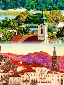 Belgrade’s "Montmartre," with cobblestone lanes lined with 19th-century taverns and art studios. Try Serbia’s national dish *Pljeskavica* (spiced meat patty) and *Rakija* (fruit brandy) at Tri Šešira restaurant.