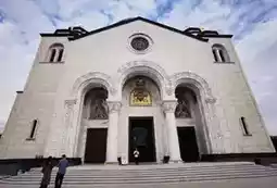 The Church of Saint Sava is the largest Eastern Orthodox church in the world to date and ranks among the top ten churches globally. Construction began in 1935 but was halted multiple times due to two world wars and political turmoil. The main structure was completed in 2003, while interior decoration is still ongoing. The church's architecture combines Byzantine and Serbian traditional styles, built entirely of pure white marble. The main dome is 70 meters high with a diameter of 26.5 meters, second only to the Byzantine dome of Hagia Sophia in Turkey. The dome features a double-shell structure, cast from 4,000 tons of bronze, and its installation took 20 days using 16 cranes. The bronze dome is topped with a 12-meter-high gilded cross. Four bell towers are evenly embedded at the four right angles of the cross-shaped layout, housing a total of 49 bronze bells. When the bells ring, all four towers sound together, filling Belgrade with melodious and pleasant chimes.