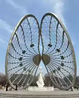 Design Meaning: A 7-meter-high steel structure sculpture inspired by the "clam" in "Bengbu," depicting the lively posture of the Pearl Lady holding a pearl emerging from a giant clam, echoing Bengbu’s nickname "Pearl City." The sculpture’s surface uses metal polishing techniques, showing changing luster under different lighting.