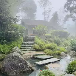 Crossing the moss-covered stone bridges surrounded by koi ponds and misty trees felt like walking into a fairy tale. Everything looked soft, fresh, and full of life, like a scene from a Ghibli movie.