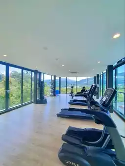 Facilities include a spacious infinity pool and a rooftop gym. Right next to the residence is a cozy forest café, where enjoying breakfast with a view was simply delightful.