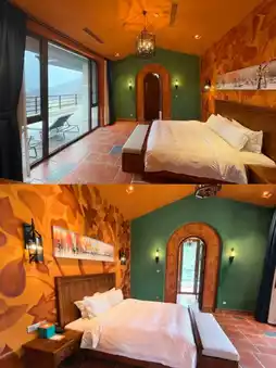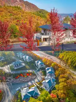 The hotel is tucked away in Hubao Village, Caohezhuang Town, just a 5-minute walk from the Azalea Geological Wonder Park! It takes only 1.5 hours by car from Shenyang city center to reach this hidden gem, and the red leaf tunnel along the way is already worth the fuel 🛣️
