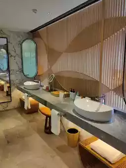 One of the main reasons for coming to Beppu was to stay at this InterContinental hotel. A Mercedes picked us up at Beppu Station, and the service was very good. Beppu is a hot spring town, and this hotel is also hot spring-themed. It is located halfway up a mountain, so it is more convenient to drive there. Otherwise, you will have to take a taxi or bus. The room we booked had a view of the smoking town, and the room was very large. The bathroom was surprisingly large. The outdoor swimming pool is also a great place to take photos, with blue skies, white clouds, the town, and the sea. At night, it has a different style. The hot spring is not very crowded, and the scenery is beautiful. It feels like a private bath. It is very pleasant to soak in the hot spring at night, and you can see the sunrise in the morning. The breakfast the next day was not very rich, but it was delicious. In Japan, a leisure hotel like this for about CNY 3,000 per night is quite reasonable.