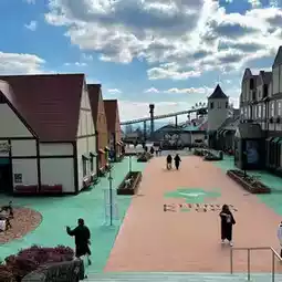 There are family restaurants, fast food restaurants, souvenir shops, and game centers.