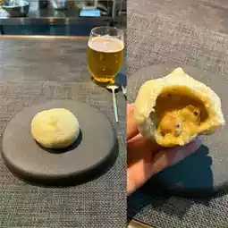 The first thing that came out of the menu that day was a luxurious bun with prawns and truffles ❤️