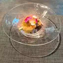 He uses tweezers to create exquisite dishes that you can't tell what they taste like at first glance, such as a dish that combines foie gras and baked sweet potato sweet potato, and serves up "not so-called French" exquisite dishes.