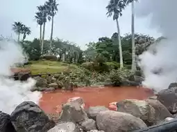 🏖️Environment/Facilities: There are many hot springs, both small and large. There are 2 prominent ones here: the largest one, Umi Jigoku, is a beautiful blue pond with a faint smell of sulfur. Another must-see is the red mud pond, Chinnoke Jigoku. The surrounding area has a beautiful Japanese-style garden where you can walk and take pictures. There is a small shrine on top to worship. You can also stop by to soak your feet in the hot spring.