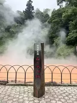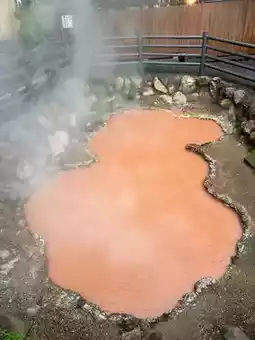 Japan's oldest natural hell where bright red hot mud gushes out.