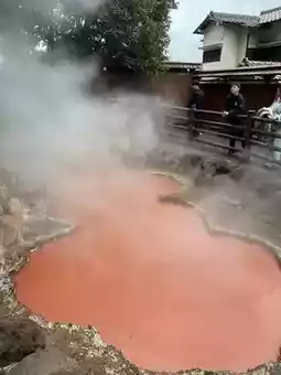 📍Kamado Jigoku Hot Spring: Witness boiling water and steam erupting from underground at nearly 100°C.