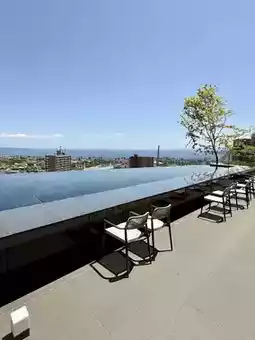 The water surface is designed to be connected to the sea, so it looks like it is one with Beppu Bay👏