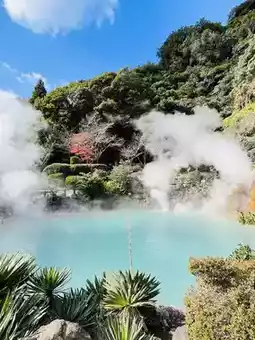 🔥💨 Visit the Hell Springs of Beppu, the city of smoky water 🌋 We can tell you that just one visit is enough to be amazed! Just walking into one of the ponds will take you on a journey of stunning natural beauty. The steam rising from the hot water, the minerals in the pond, and the unique colors of the water will make you feel like you're in another world. 🏞️