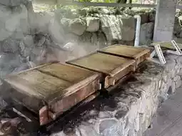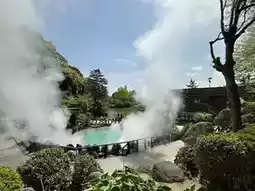 Oniishi Bozu Hell (おにいしぼうずじごく) is characterized by its gray-white mud that bubbles and boils, resembling the bald heads of monks, hence its name. The site also has a foot bath area where visitors can soak their feet and enjoy the warmth and relaxation brought by geothermal heat.