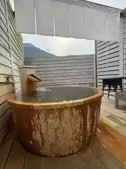There's a large public bath, but you can also use the private open-air bath for free once (reservations required).