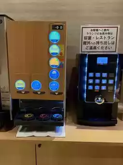 There's a drink bar with push-serve plum wine, red and white wine, various beers, and a coffee grinder ☕️