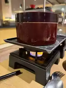 🌿 A special feature is the onsen steam cooking at each table (self-serve vegetables and seafood to steam yourself), along with the heavenly grilled pudding dessert.