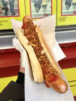 For lunch? A hotdog from Trekroneren, the local street food legend. Crunchy onions, juicy sausage, and that smoky flavor hit the spot on a cold day.