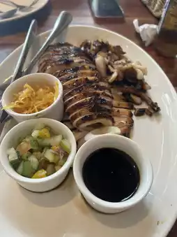 ➡️ Spareribs - Pork ribs marinated in a juicy sauce, the pork is soft and just right, with a salty and sweet taste. It is served with a salad.